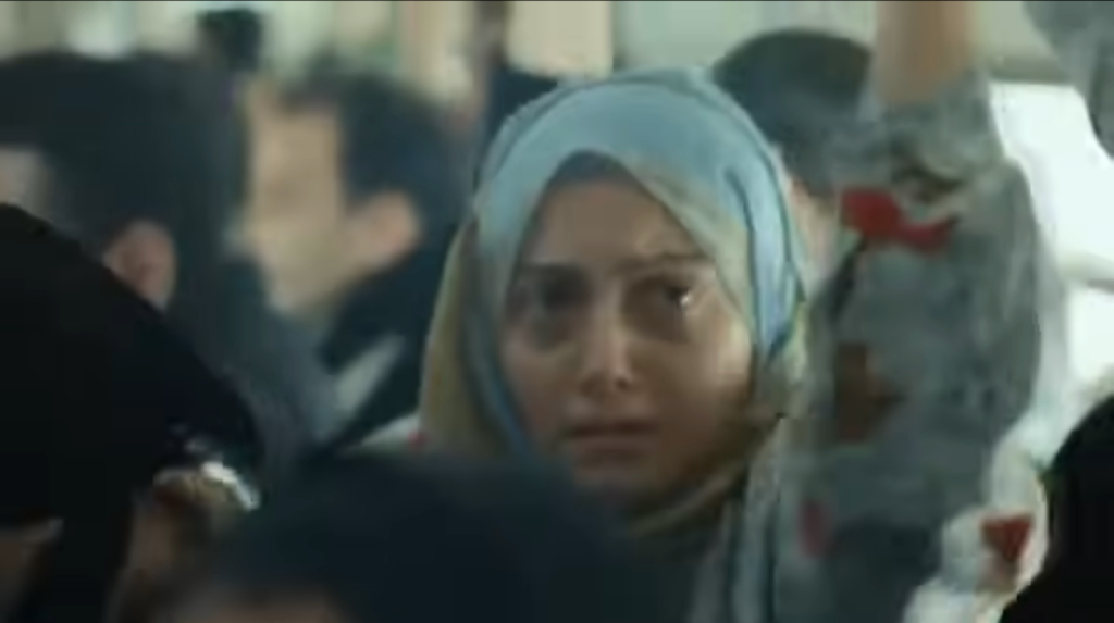 Rimanendo fedele alle basi realistiche del third cinema, Diab rimuove anche la musica extra diegetica in queste scene enfatiche. Invece di guidare emotivamente il pubblico con una partitura, si affida al suono grezzo e diegetico. L’assenza di musica nega allo spettatore la distanza emotiva o il sollievo. Le molestie, da un punto di vista cinematografico, non risultano dinamiche né tantomeno drammatiche; sembra banale e terribilmente ordinario, rafforzando l’idea che questa violenza sia parte di una routine piuttosto che un evento eccezionale. Inoltre, la guida del regista sposta l’attenzione sulle voci dei passeggeri. Voci che si impegnano in conversazioni completamente discordanti dalla tensione sovrana che il volto di Fayza rende tangibile.